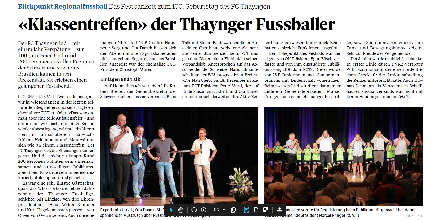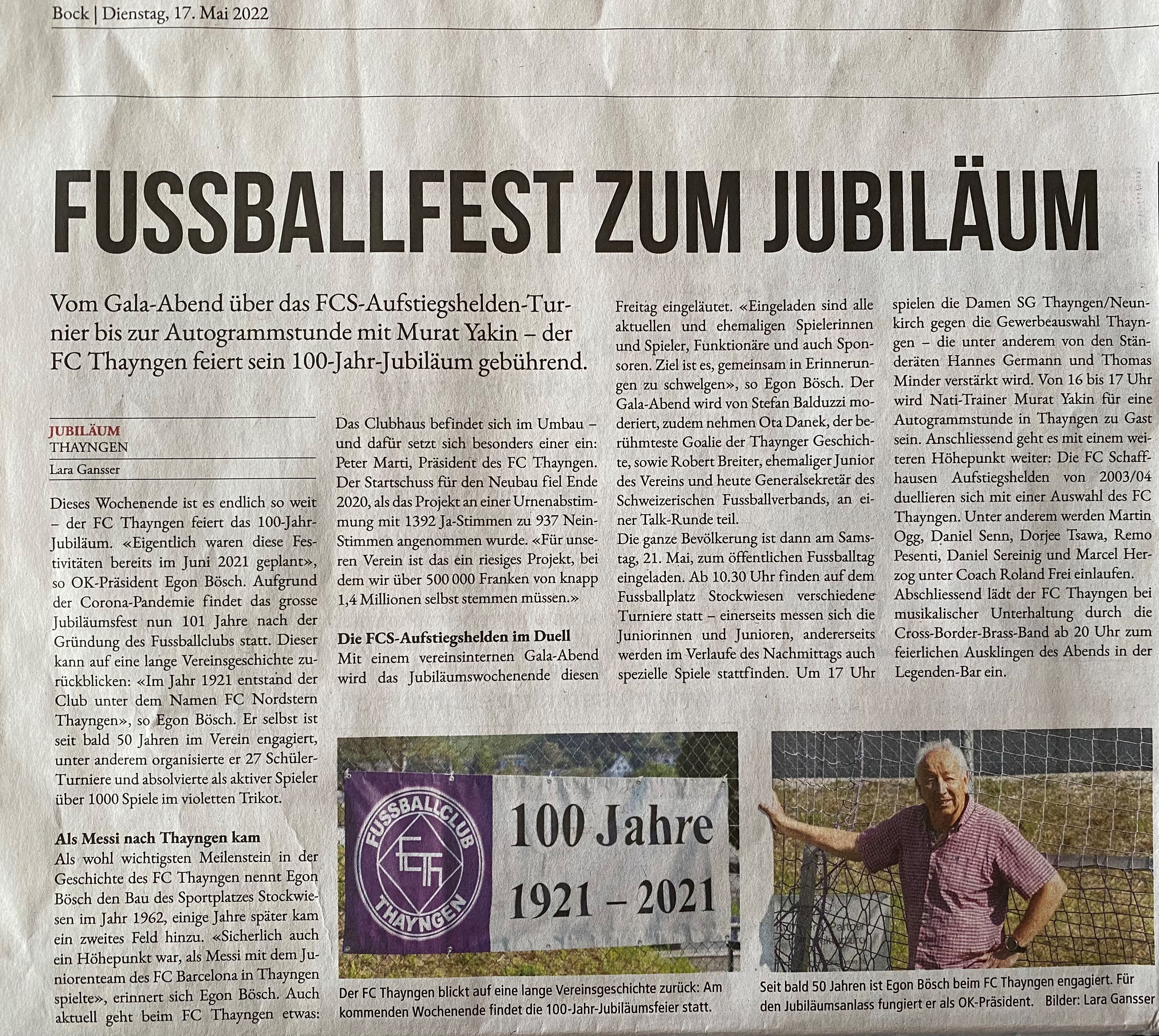 Schaffhauser Nachrichten vom 23.05.2022 (Bericht nach dem Jubi-Wochenende)